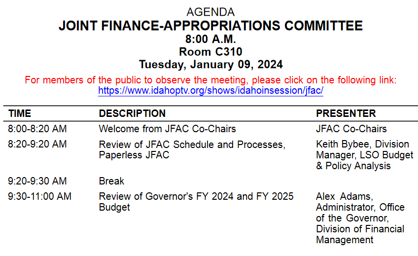 This year, JFAC will begin meeting before the legislative session to review agency budget requests early. Agencies requesting more tax dollars will need to outline specific goals, which can be evaluated next year to assess how the funds were used.