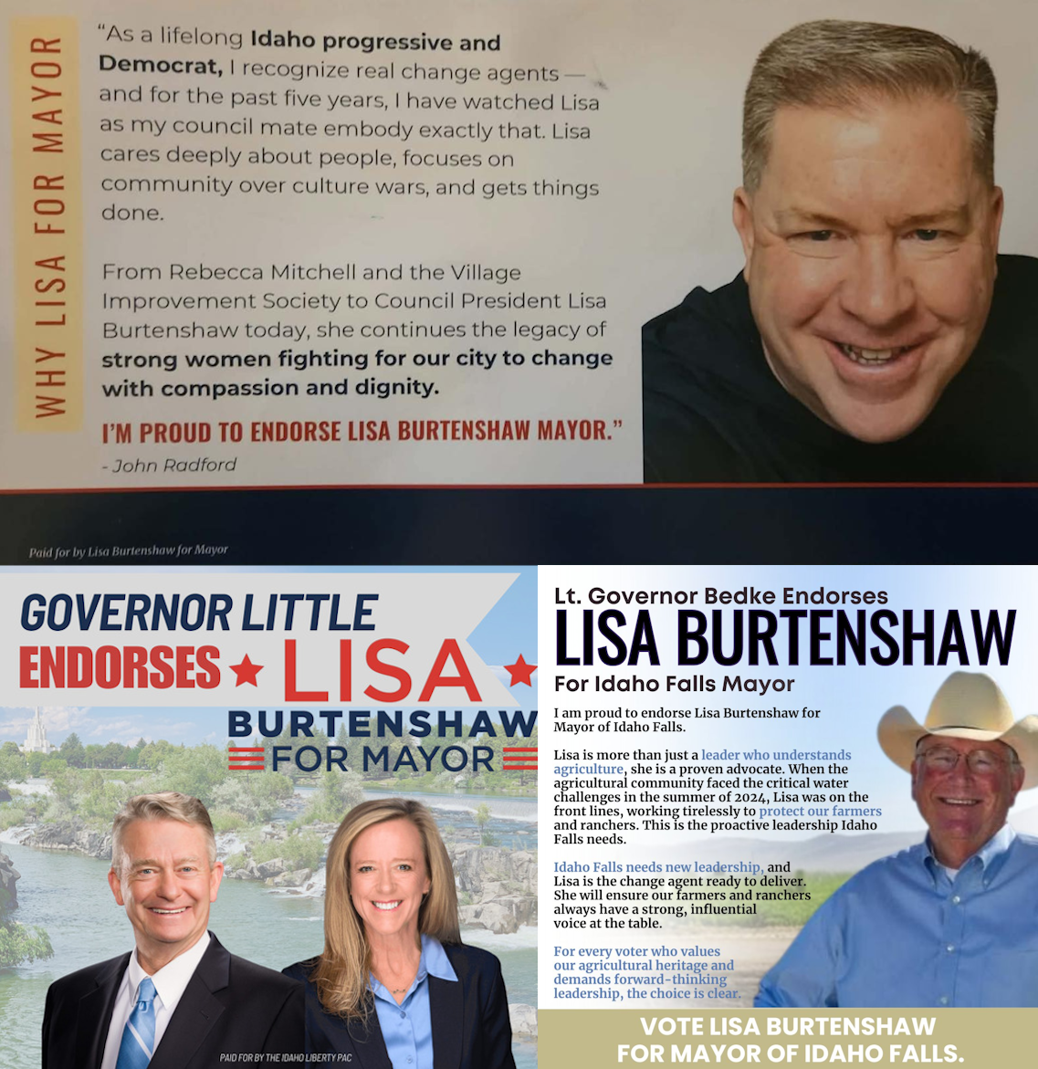 In the weeks since Election Day, a tremendous amount of money and rhetoric has poured into Idaho Falls. Mailers have gone out in support of Lisa Burtenshaw claiming endorsements not only from Gov. Brad Little and Lt. Gov. Scott Bedke, but local Democrats as well. Will that strategy—separately courting Democrats and Republicans in a mayoral campaign—pay off?
