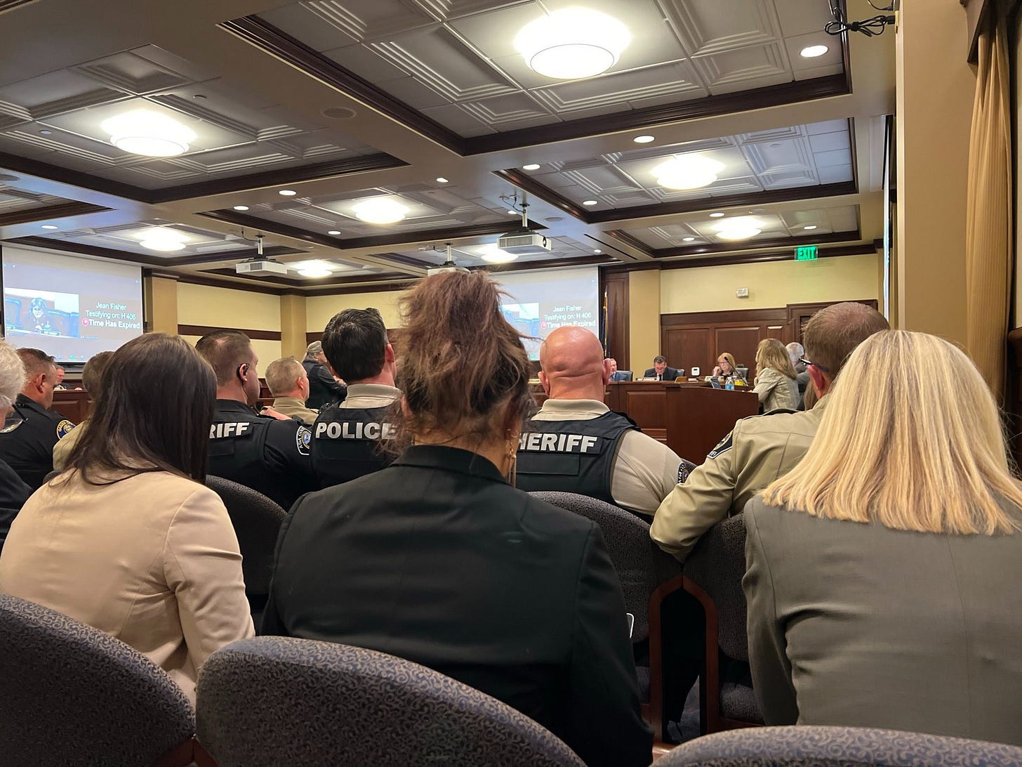 Indeed, one of the first people to testify was Meridian Police Chief Tracy Basterrechea who essentially said that anyone who claims to “back the blue” must support this bill. “This is truly a vote on whether or not you support your local law enforcement,” he began. Rep. Julianne Young objected, saying that asking questions about the bill doesn’t mean they don’t “back the blue”. Chairman Skaug agreed, and Chief Basterrechea apologized.