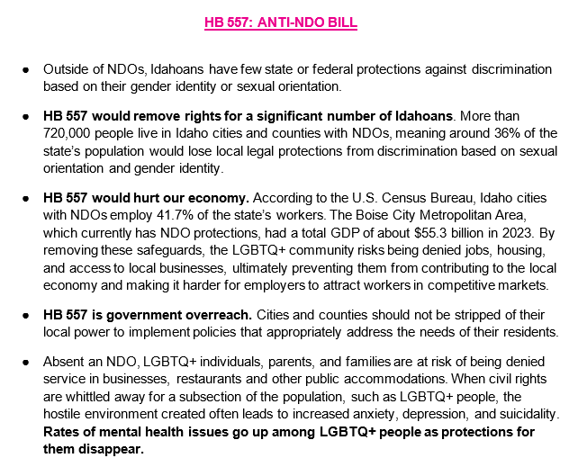 On Monday afternoon, Rep. Bruce Skaug will present House Bill 557, which would standardize nondiscrimination ordinances throughout Idaho. The bill would prohibit cities from imposing local nondiscrimination ordinances beyond state law, declaring that such matters are the purview of the state alone.