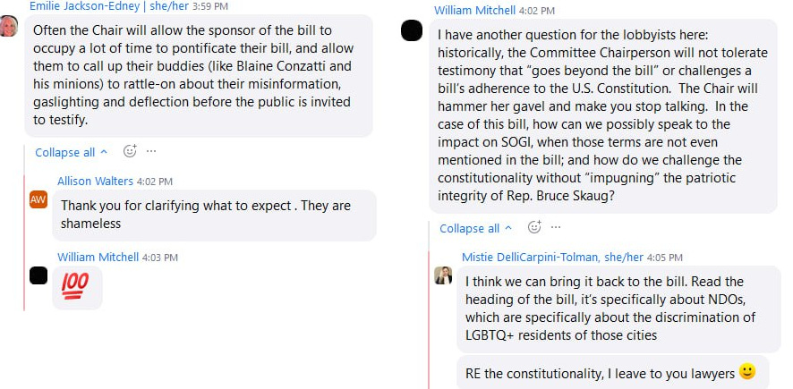 Activists were urged to contact the Democrats on the committee, Reps. Monica Church and Steve Berch, as well as Republicans they consider movable on this issue: Reps. Rick Cheatum, Jon Weber, Josh Wheeler, and Marco Erickson: