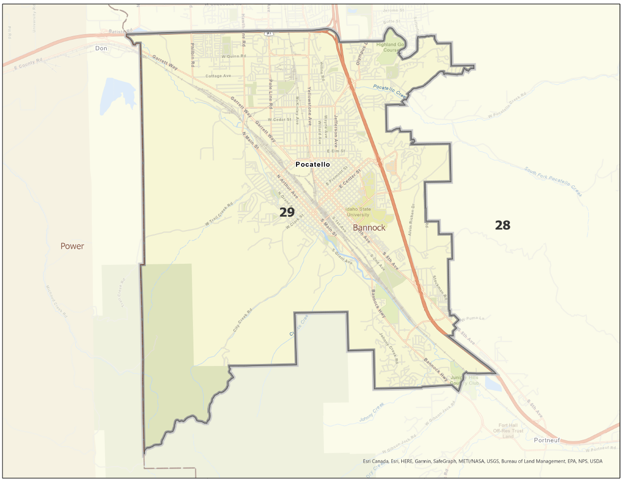 Legislative district 29 comprises the city of Pocetello, so you would think it would be solidly blue. Not so — it is another battleground. Rep. Dustin Manwaring not only represents LD29, but he also serves as the Republican Caucus Chair in the House. Rep. Nate Roberts is his Democratic seatmate. Republicans could not find a candidate to challenge Democratic Sen. James Ruchti, who will win reelection to a second term.