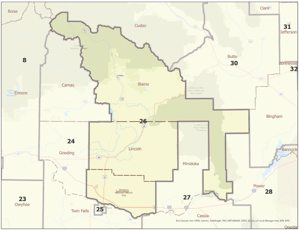 Legislative district 26 covers Blaine, Jerome, and Lincoln Counties, which means it includes the leftist enclave of Sun Valley. Nevertheless, it remains a purple district, especially after the maps were redrawn after the 2020 census. The district is currently represented by one Republican and two Democrats, though Rep. Jack Nelson is perhaps the most liberal member of the Republican House caucus. His seatmate is Rep. Ned Burns along with Sen. Ron Taylor.