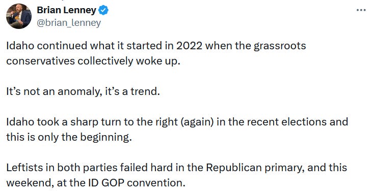 I’ll write more about this soon, but a major theme of the Gem State Conservative officer candidates was that they all looked backward. Nearly every one invoked Ronald Reagan, and they all talked about things that occurred 20, 30, or 40 years ago. Voters and activists are ready to look forward.