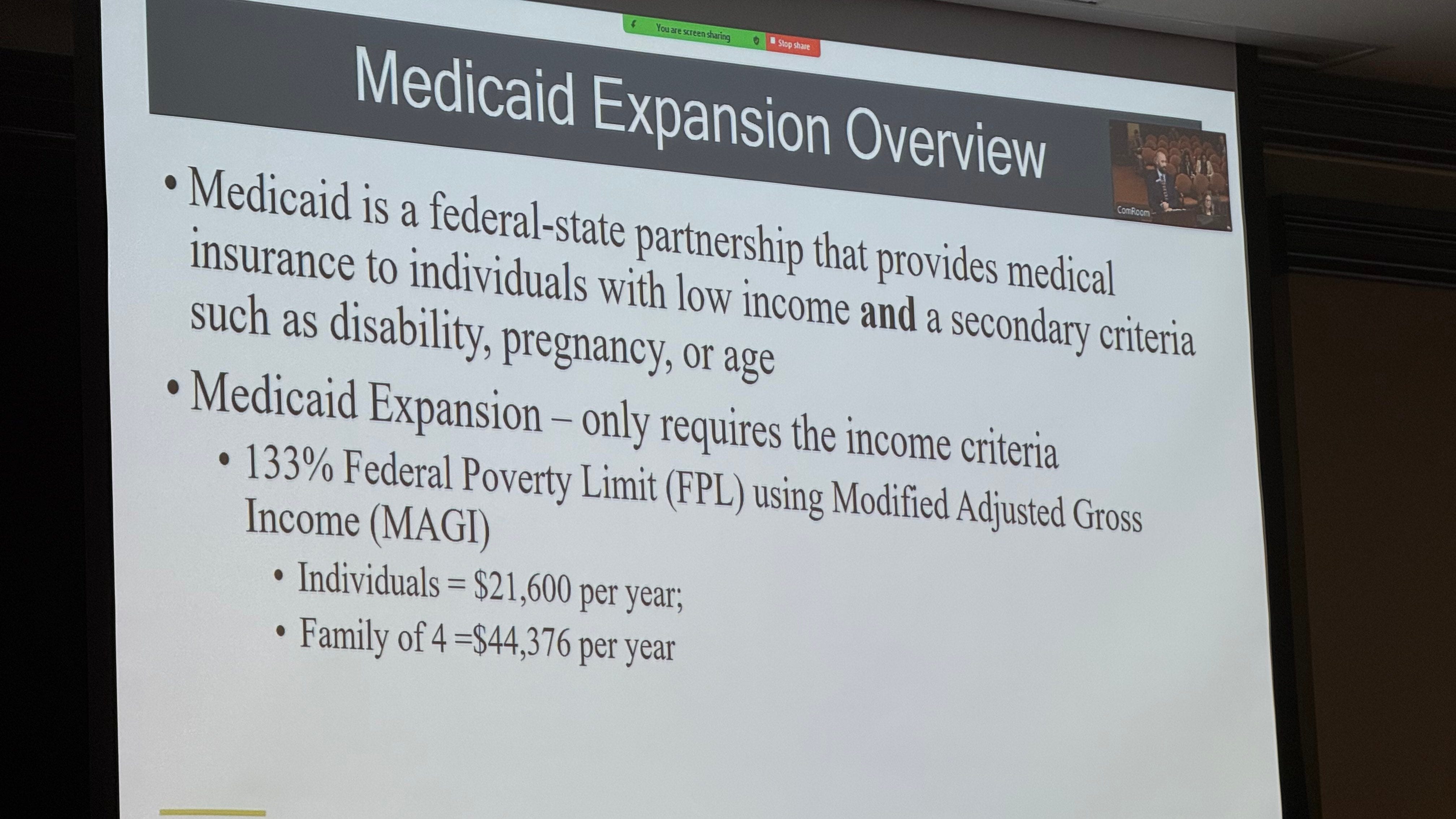 Legislative Services Office (LSO) analyst Jared Tatro provided historical context on Medicaid Expansion, reviewing Proposition 2 from the 2018 ballot. Tatro noted that cost estimates were significantly underestimated nationwide, and that the onset of COVID-19 during implementation further distorted projections due to new federal requirements.