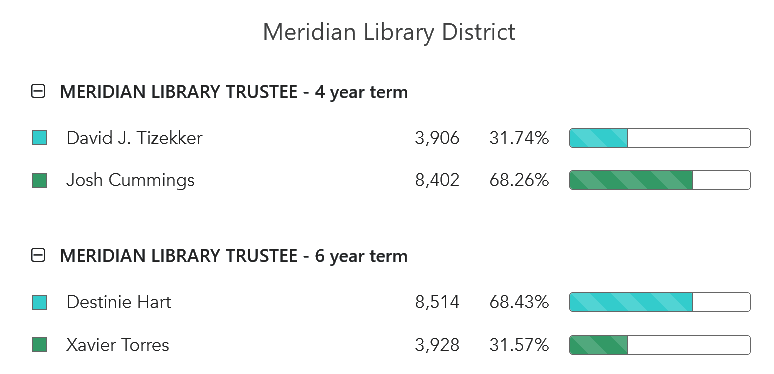 The results from the library board races were mostly disappointing. Tom Hanley and Tim Plass, solid conservatives who promised to keep obscene materials away from children, thankfully won in Coeur d’Alene, but other great candidates lost almost everywhere else. David Tizekker and Xavier Torres each lost their Meridian Library races by more than 2:1.