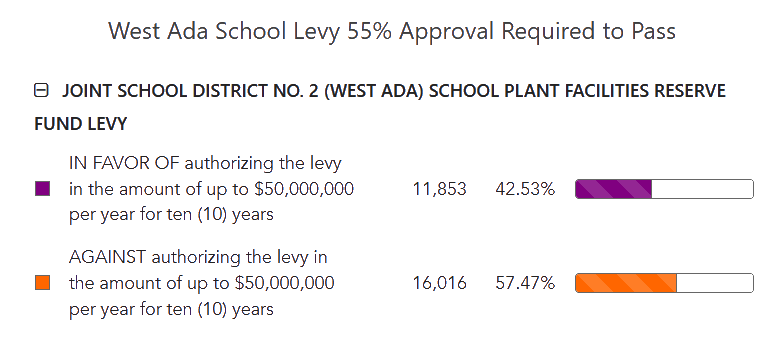 Unfortunately, other levies passed, such as Coeur d’Alene, Vallivue, and Parma. The latter did so overwhelmingly, perhaps aided by blatant misuse of public funds to promote the levy. Not only did they post messages on Facebook and their official website threatening draconian cuts if the levy failed, but a teacher sent a message on Tuesday morning from her official school account explicitly urging parents to vote yes.