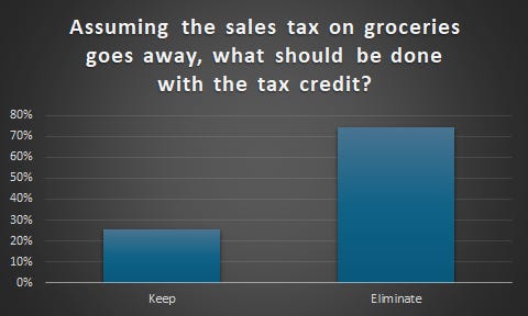 90% of respondents said the Legislature should eliminate the sales tax on groceries. That’s about as strong of a mandate as you can get on an issue.
