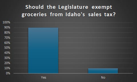 Last Friday, after sharing the background on Idaho’s sales tax on groceries and the pros and cons of eliminating that tax, I asked you to tell me what you think. I was pleased to see many new people come onboard as free subscribers to take part in the survey, which is now closed.