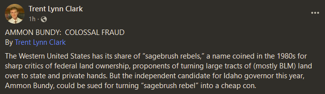 On the other side, former Idaho GOP Chairman Trent Clark posted an essay accusing Bundy of being a fraud: