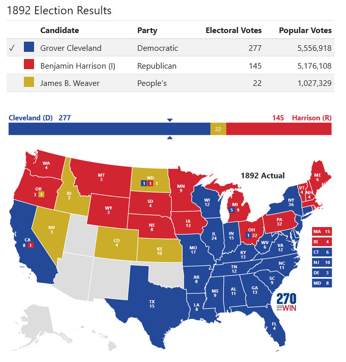 As I continued to research the history of Idaho’s admission to the union and the status of federally-controlled lands in western states, I noticed something interesting. Idaho was admitted to the union in 1890, meaning that the first presidential election our citizens took part in was the 1892 rematch between President Benjamin Harrison and former president Grover Cleveland. However, Idaho voted for neither, opting instead to support James B. Weaver of the Populist Party.