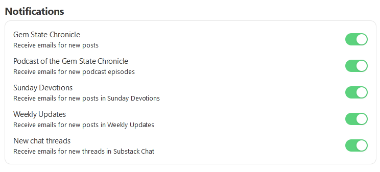 To keep getting daily emails make sure to leave “Gem State Chronicle” checked.