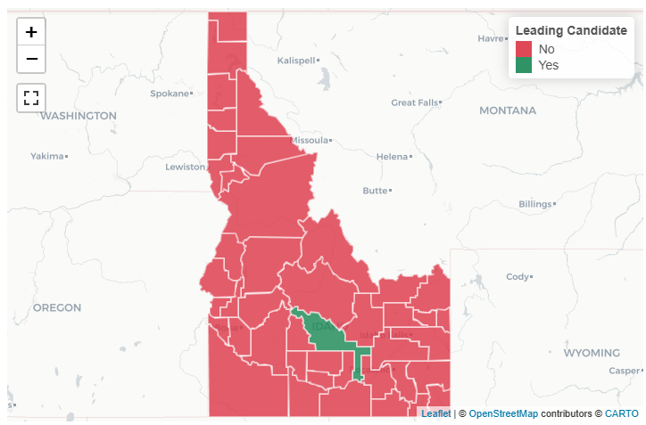 Every county in Idaho rejected Prop 1, except for deep blue Blaine County: