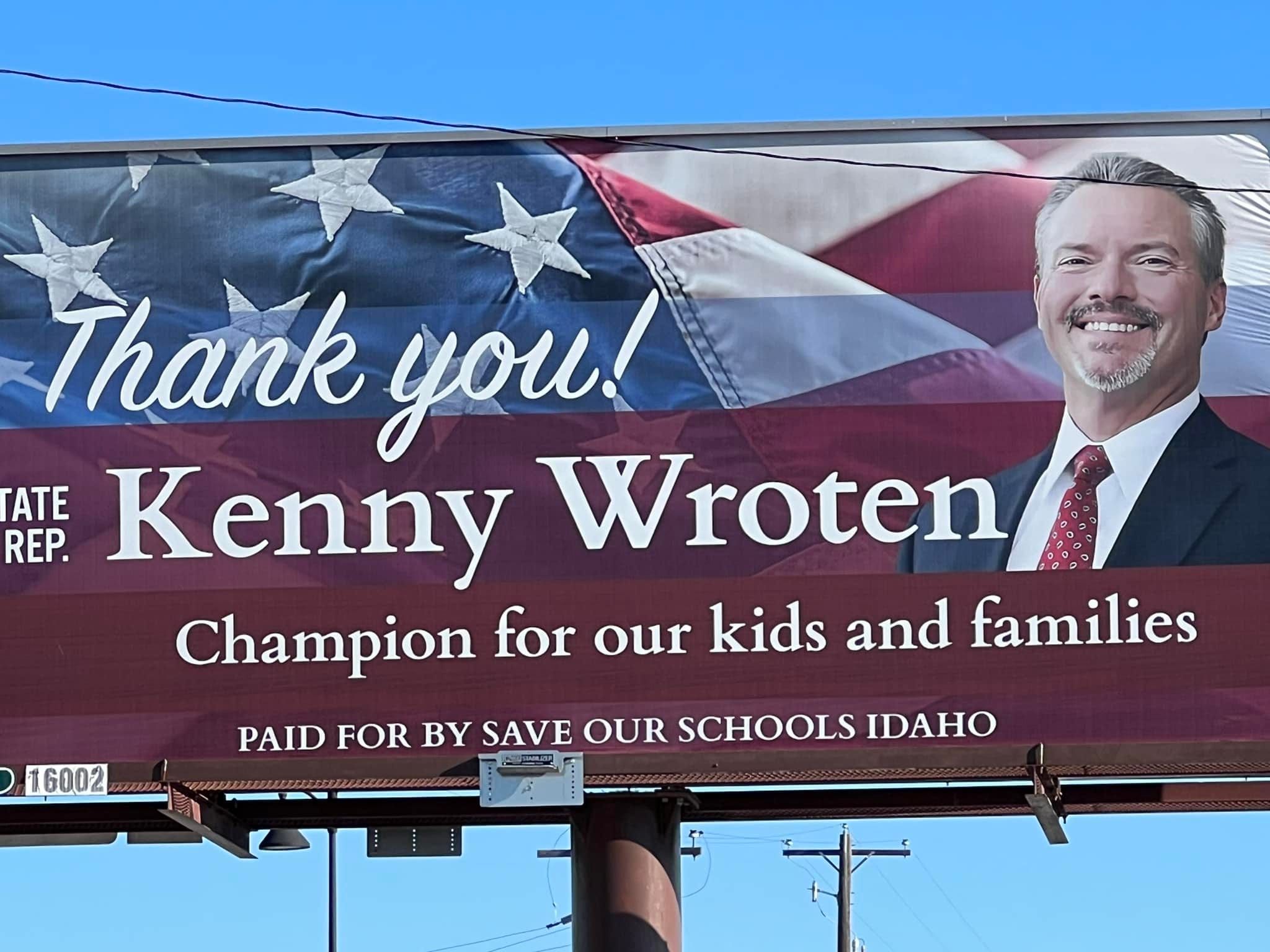 Some billboards recently appeared in the Treasure Valley praising legislators who voted against school choice. This one extolling Rep. Kenny Wroten of Nampa was paid for by a political nonprofit called “Save Our Schools Idaho Inc.”