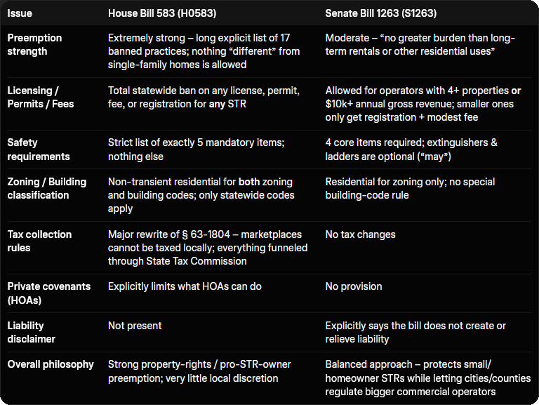 H583 passed the House 54–16 earlier this month and was scheduled for a hearing Thursday afternoon alongside another STR bill, Senate Bill 1263. I ran the text of both bills through Grok and asked it to compare and contrast them.