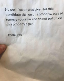 Someone reached out to the Knittel campaign with a picture of a man in the process of removing the signs: