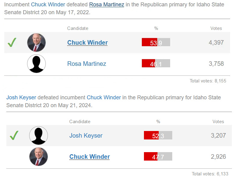 Strategy requires ruthlessness. Nobody likes negative advertising, yet it is effective at reducing support for your opponent. Sen. Chuck Winder was absolutely hammered by Young Americans for Liberty, which is a big part of why he became the first pro tem to lose a primary in who knows how long. Turnout in the LD20 race dropped by more than 2,000 voters this year, a decrease of nearly 25% from 2022. Three quarters of those missing voters supported Winder two years ago.