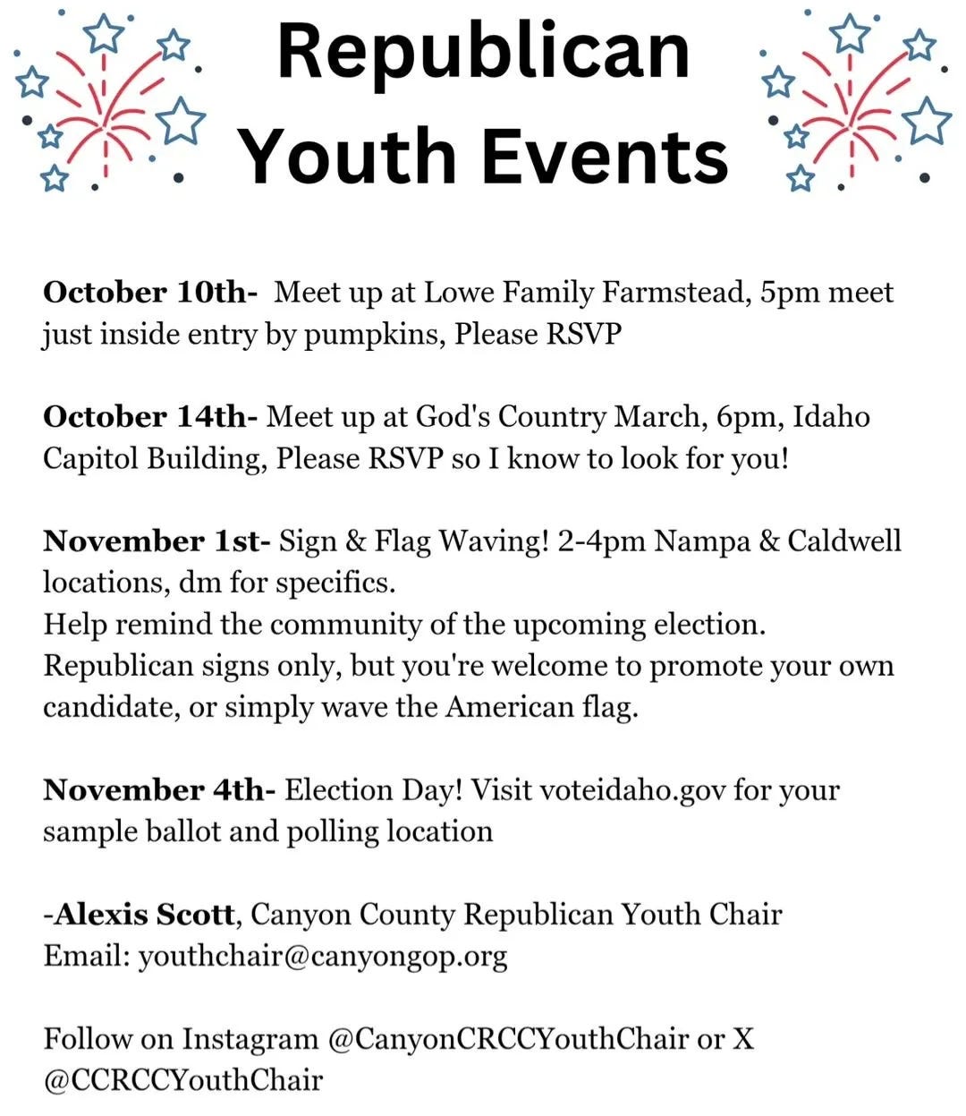 Ashley Mujagic and Alexis Scott, youth chairs for the Ada and Canyon County GOP respectively, are hosting numerous events for young adults this next month: