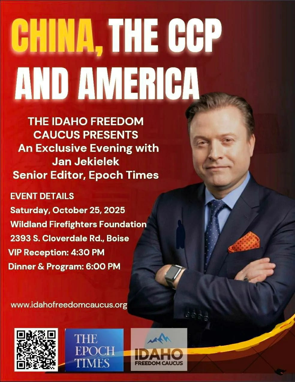 The Idaho Freedom Caucus is hosting Jan Jekielek of Epoch Times for a talk about China and the United States on Saturday, October 25: