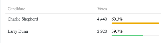 Larry Dunn had a conservative message but I think voters in LD7 had no reason to switch horses. Rep. Shepherd has done a good job representing his district in a way that is steady without being flashy.