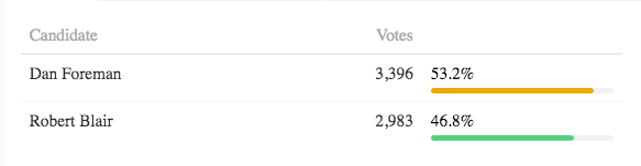 Sen. Foreman beat Robert Blair in a three way primary in 2022 and then won a close race against incumbent Democrat Sen. David Nelson in the general. This contest went back and forth last night but Foreman won comfortably in the end despite Blair’s support from IACI and other establishment groups.