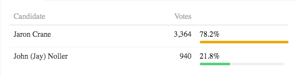 Rep. Crane won a resounding victory last night. Noller never responded to my interview request and I found very little information about him, so it’s no surprise that he won so few votes. Crane has been a great voice in the House these past two sessions and I’m looking forward to seeing him back next year.