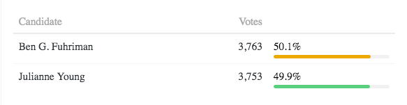 This is probably the biggest gut punch of the night, even more than Sen. Herndon’s loss. Rep. Young has been one of my favorite people to watch on the floor and in committee as she calmly and methodically debates every issue. Losing by only 10 votes hurts, especially when she was the target of one of the most dishonest mailers in recent memory at the hands of Young Americans for Liberty.