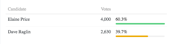 I was unable to find contact info for Dave Raglin when I sent out my interview requests last month, and he only got his website active a week or two ago. Glad to see Rep. Price hold off the challenge and return to the Legislature.
