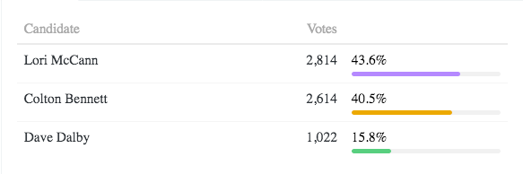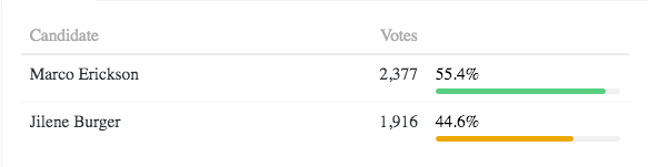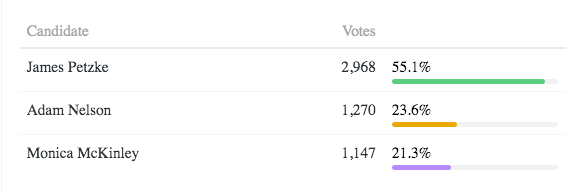 Rep. Petzke won reelection with an outright majority in a three way race. Both Nelson and McKinley brought some interesting ideas to the table but Petzke put in the work to turn out his voters and will return for a second term.