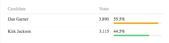 Kirk Jackson was leading in early returns but Rep. Garner pulled out a comfortable victory. Eastern Idaho still remains a tough nut to crack.