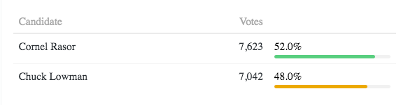 Rep. Cornilles only won in 2022 by 74 votes in a three way race, but last night he won a solid victory over Jarome Bell. I suspect that the fact that Bell only recently moved here from Virginia might have hurt his chances.
