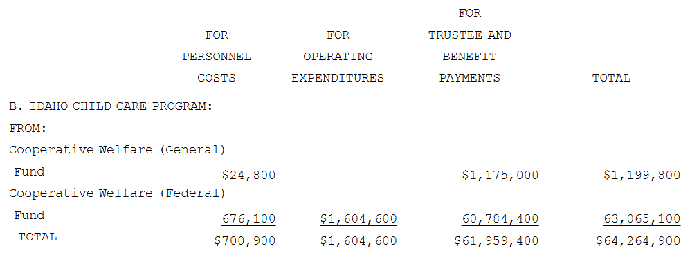That is the authority cited in IDAPA 16.06.12, which governs the Idaho Child Care Program. It is worth taking a few minutes to read through the 23 pages of ICCP rules, keeping in mind that they were drafted within the executive branch. While the Legislature must approve administrative rules, once in place they can be difficult to fully repeal.