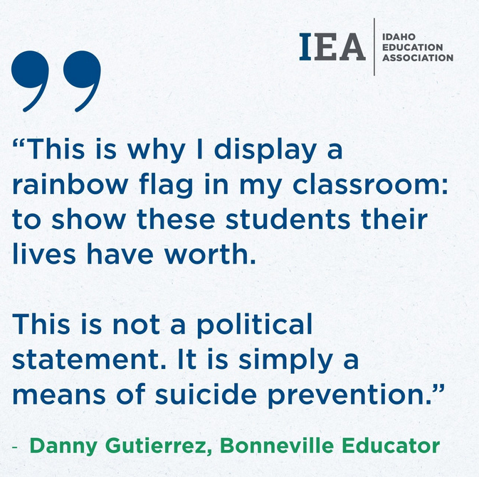 Here at home, the IEA is fighting hard for its member teachers’ right to spread radical gender ideology to your children. Consider this screenshot from the IEA website promoting pride flags in the classroom: