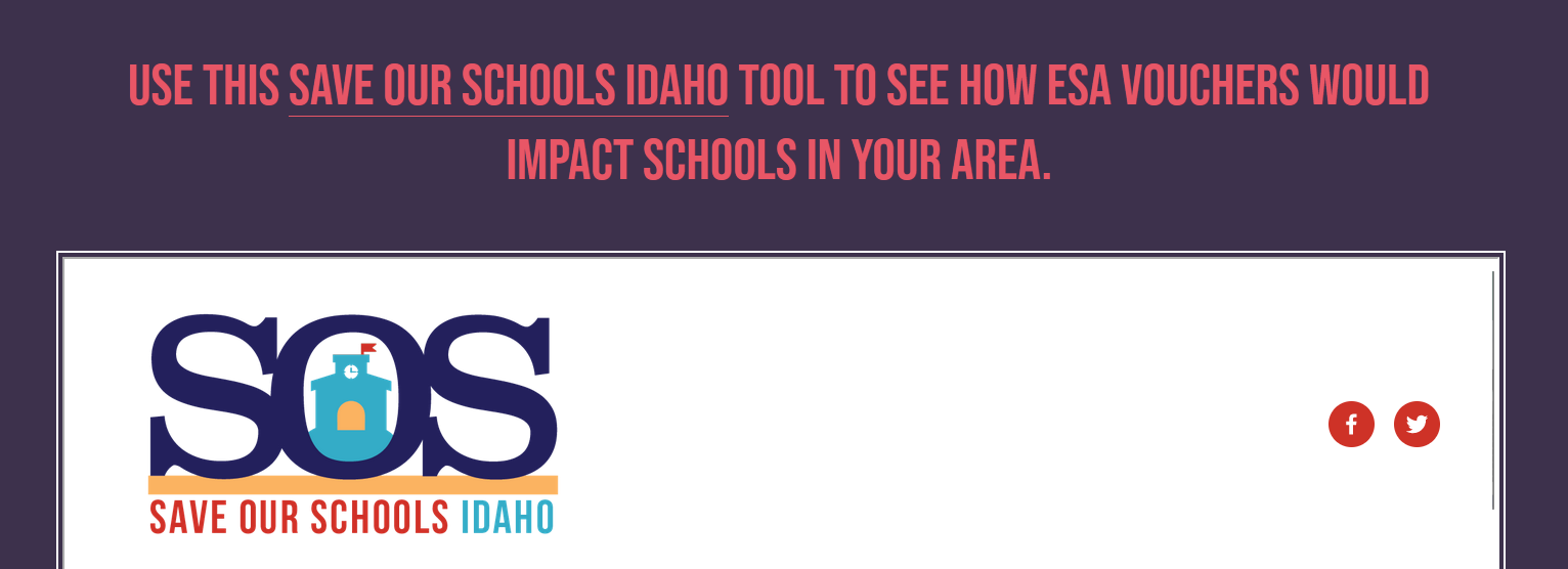 I recently highlighted one 501c4 organization called Save Our Schools Idaho which opposes any bill to expand school choice, no matter how mild. I noticed recently that the website for Rep. Soñia Galaviz, a freshman Democrat on the House Education Committee, links to Save Our Schools as a resource to “see how ESA vouchers would impact schools in your area”.
