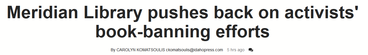 Carolyn Komatsoulis and the other reporters at the Idaho Press and like-minded outlets clearly assume that the LGBTQ+ worldview is the correct one, thus they cast any opposition to explicit materials at the library as book banning because they cannot imagine any other reason except that the citizens concerned are bigots and Nazis.